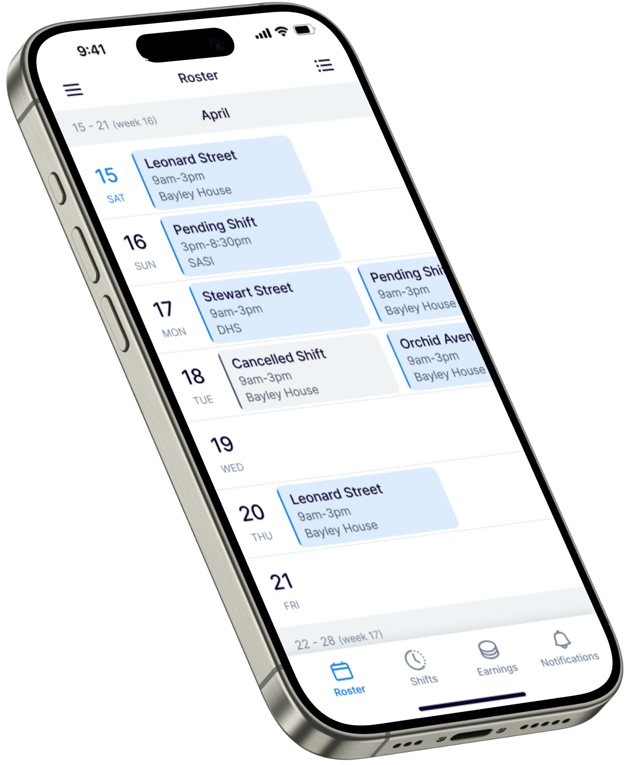 Take control of your work-life balance. Manage your roster schedule, locations, and clients, allowing you to have control over your work requirements and be equips with the tools and guidance for better care. Whether you specialise in personal care, home support, or community involvement, we connect you with opportunities that match your skills and availability.